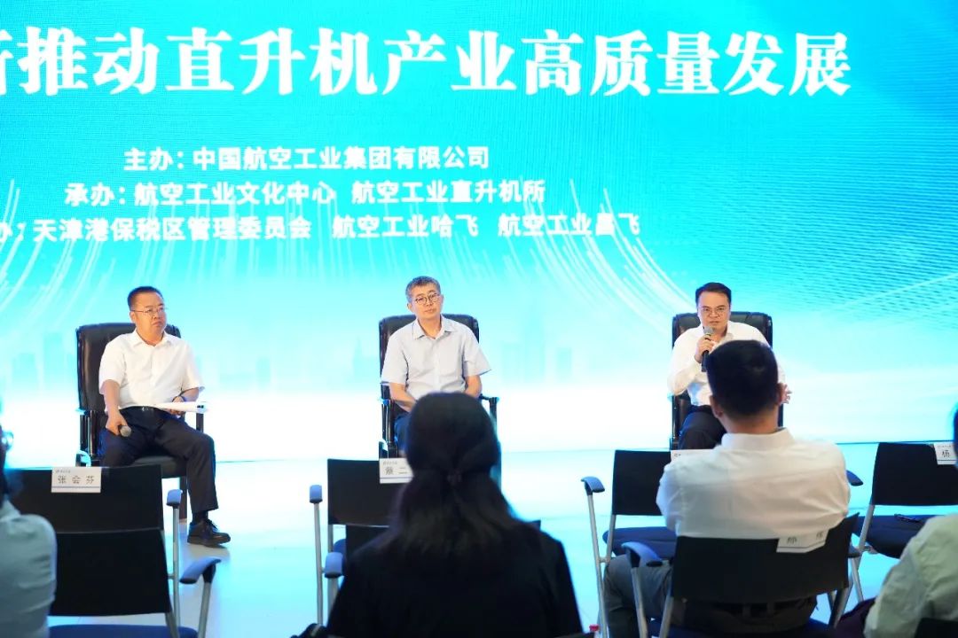 航空工業直升機所總設計師鄧景輝、航空工業昌飛副總經理謝曉文、航空工業哈飛民機副總經理楊廣朝等有關專家領導就媒體關心關注的科技創新、應急救援、產品系列化發展和人才培養等問題進行了詳細解答和交流。