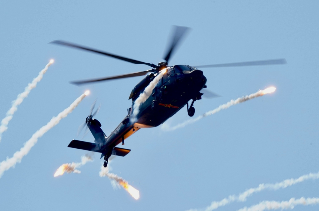 ▲第六屆天津直博會上,直20在釋放干擾彈