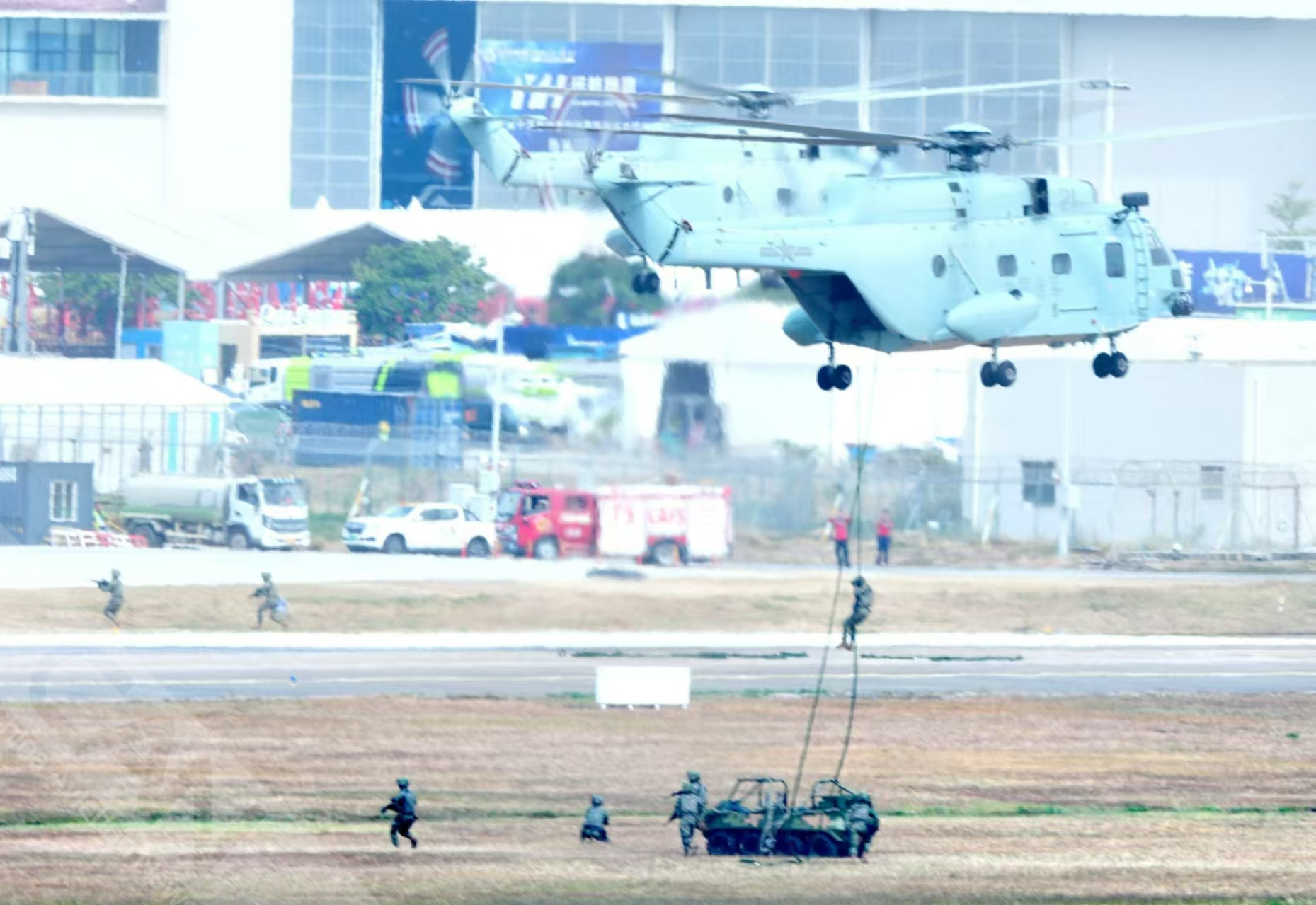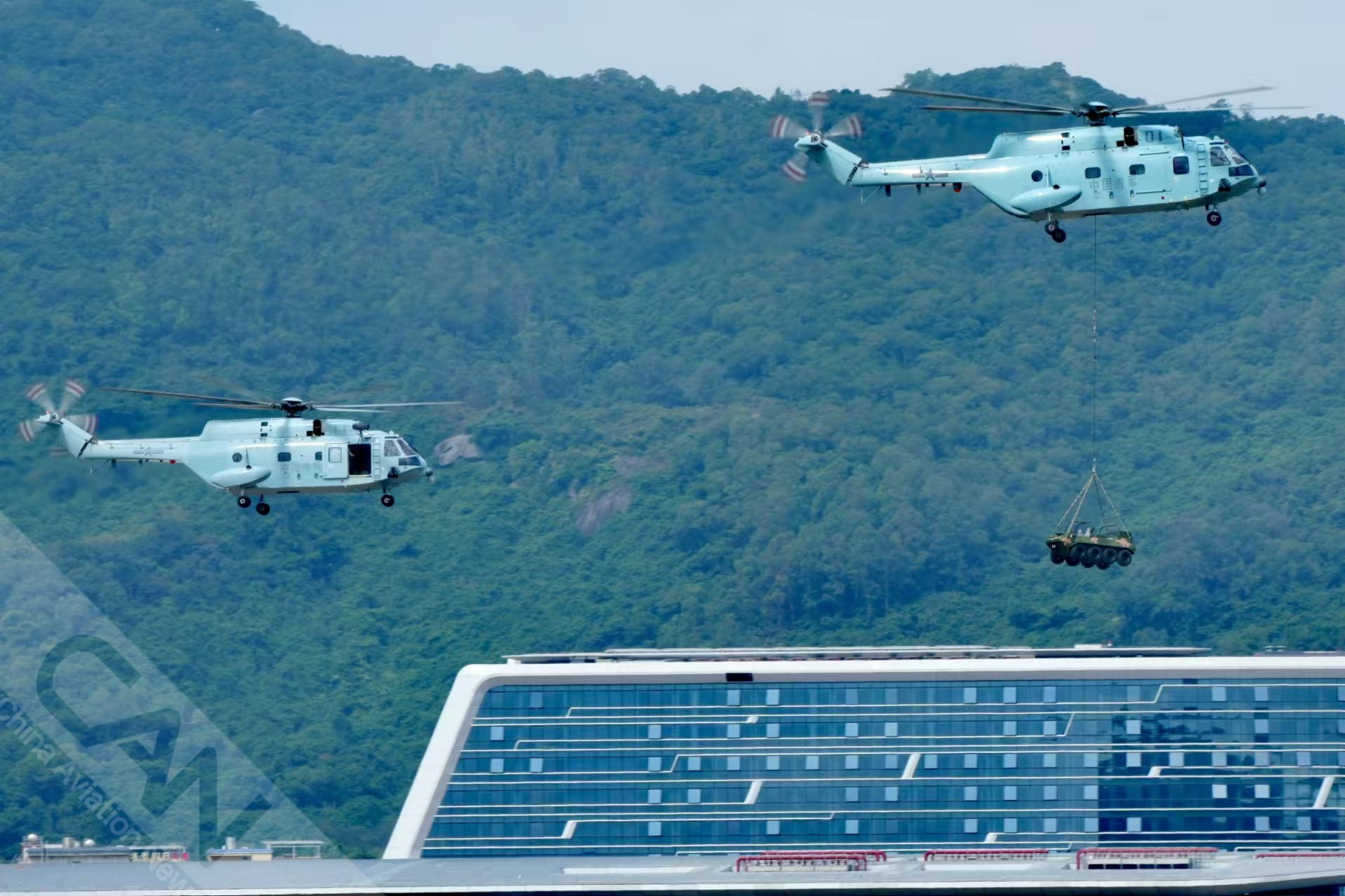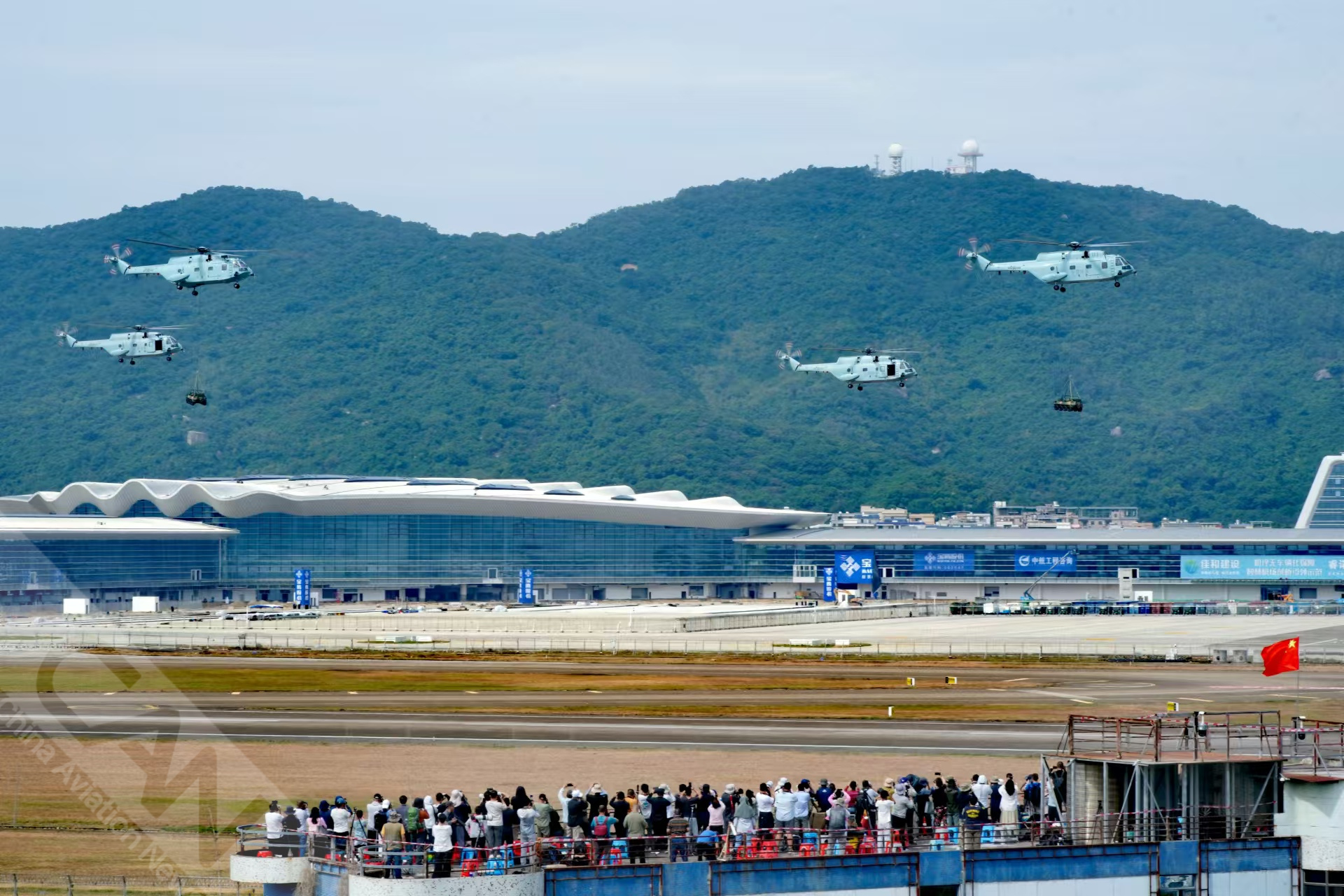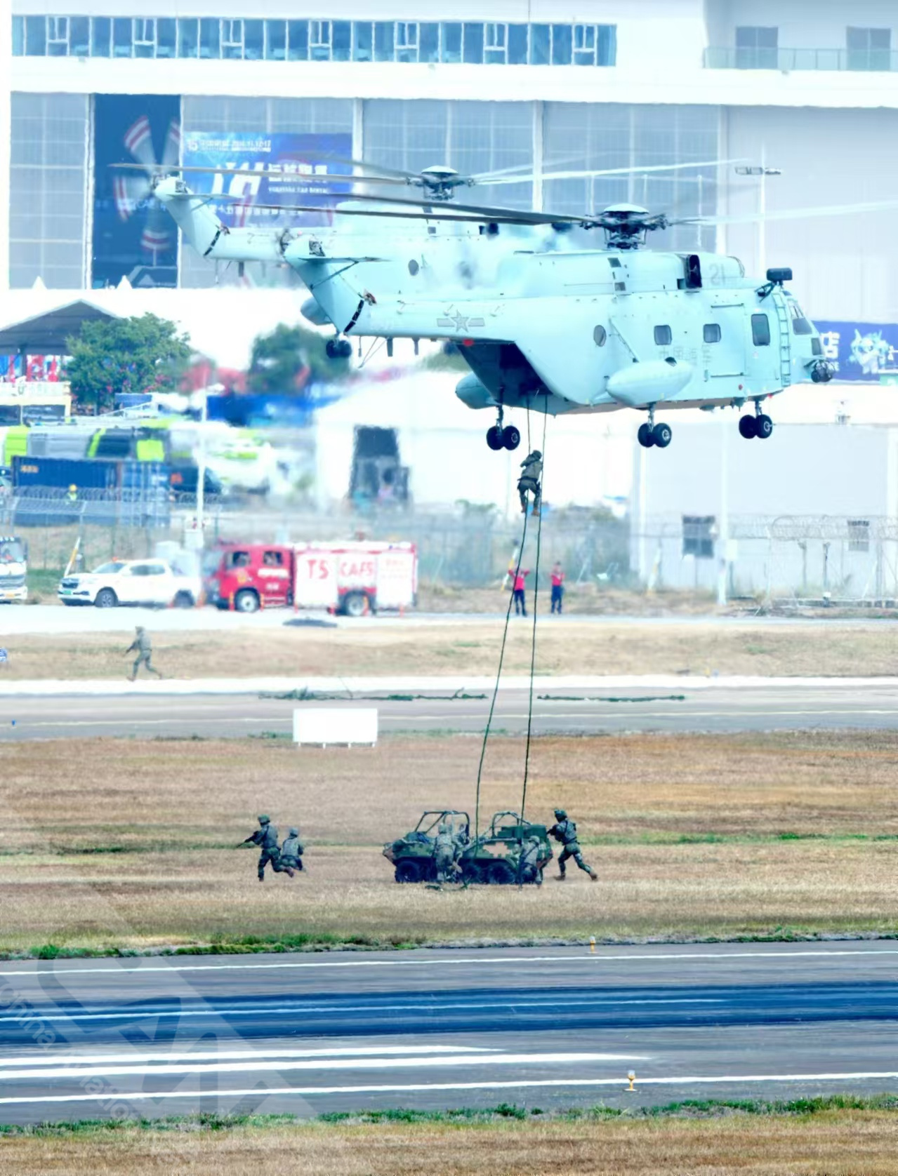 11月9日,海軍直8直20飛抵珠海航展,直20艦載直升機搭載陸戰隊員進行突擊訓練。據了解,今年是海軍第一次參加中國航展。(攝影:岳書華)