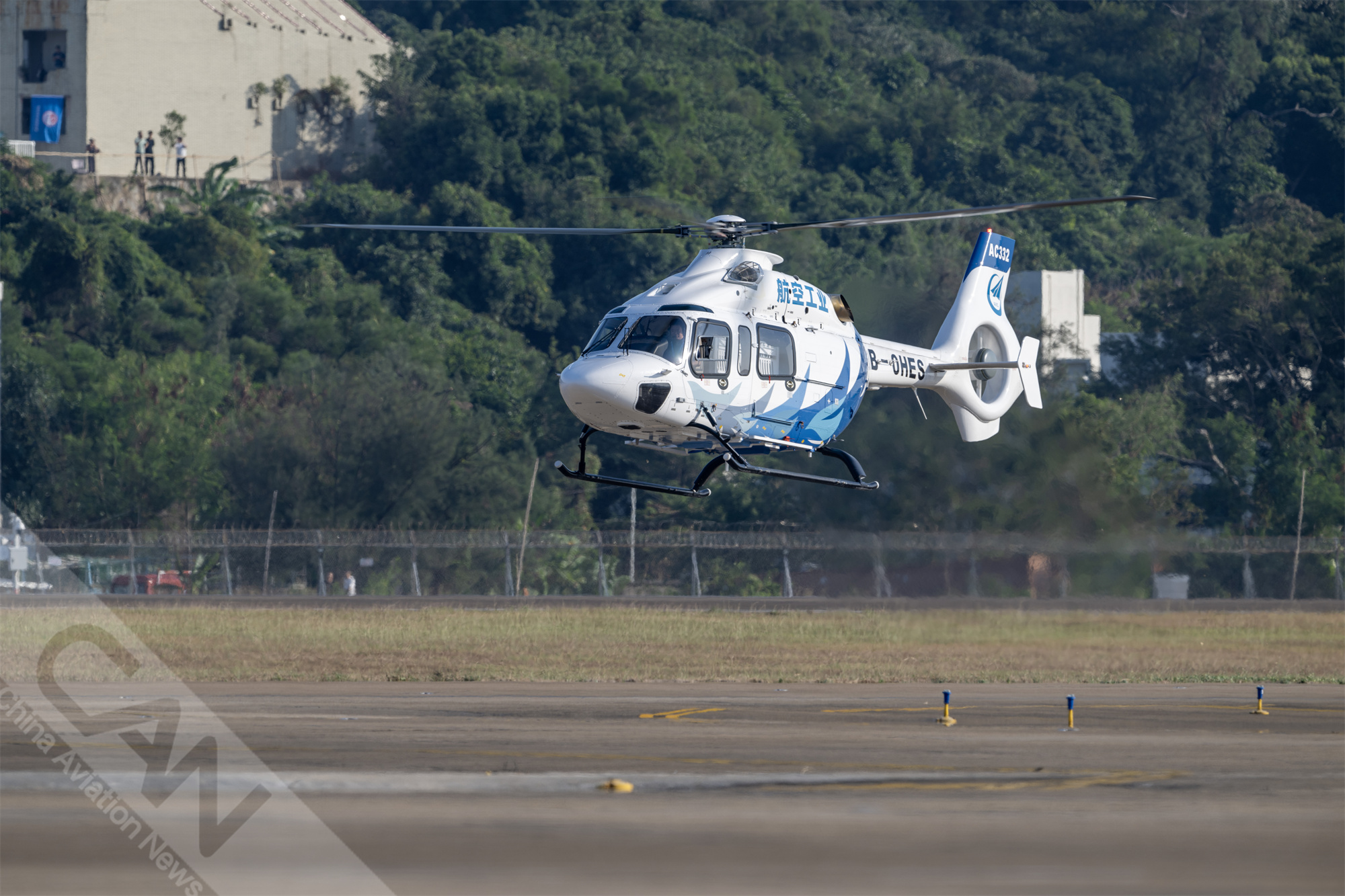 11月8日,AC332在2024中國(guó)航展開(kāi)幕前夕,開(kāi)展飛行訓(xùn)練。AC332是一型雙發(fā)多用途直升機(jī),可廣泛應(yīng)用于應(yīng)急救援、醫(yī)療救護(hù)、公務(wù)執(zhí)法、高原作業(yè)、海上作業(yè)等領(lǐng)域。攝影:曹楠