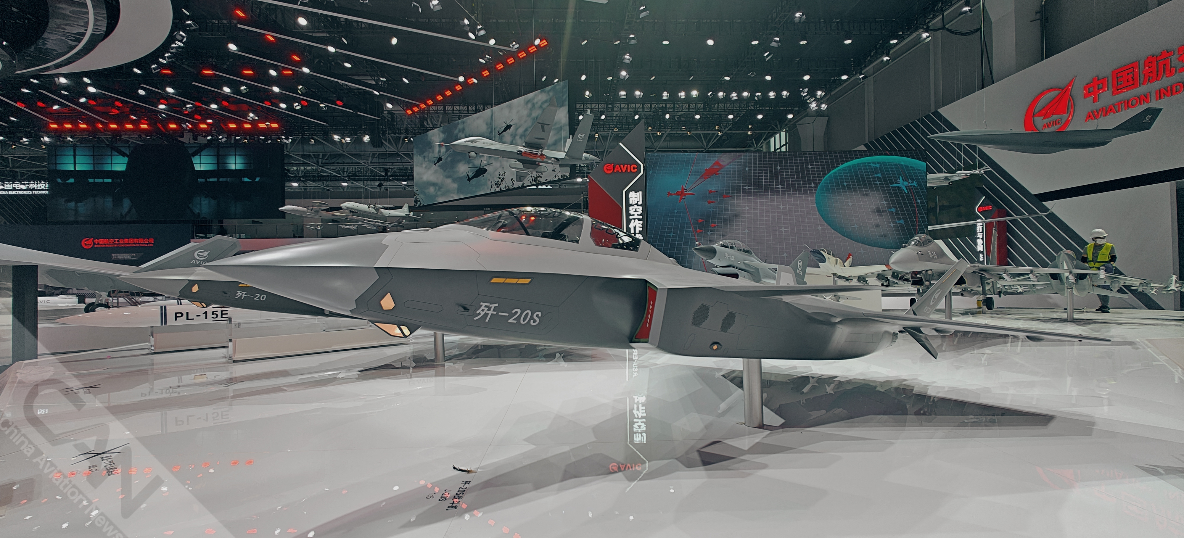 中國(guó)航空工業(yè)集團(tuán)展臺(tái)殲20 攝影:王蘭