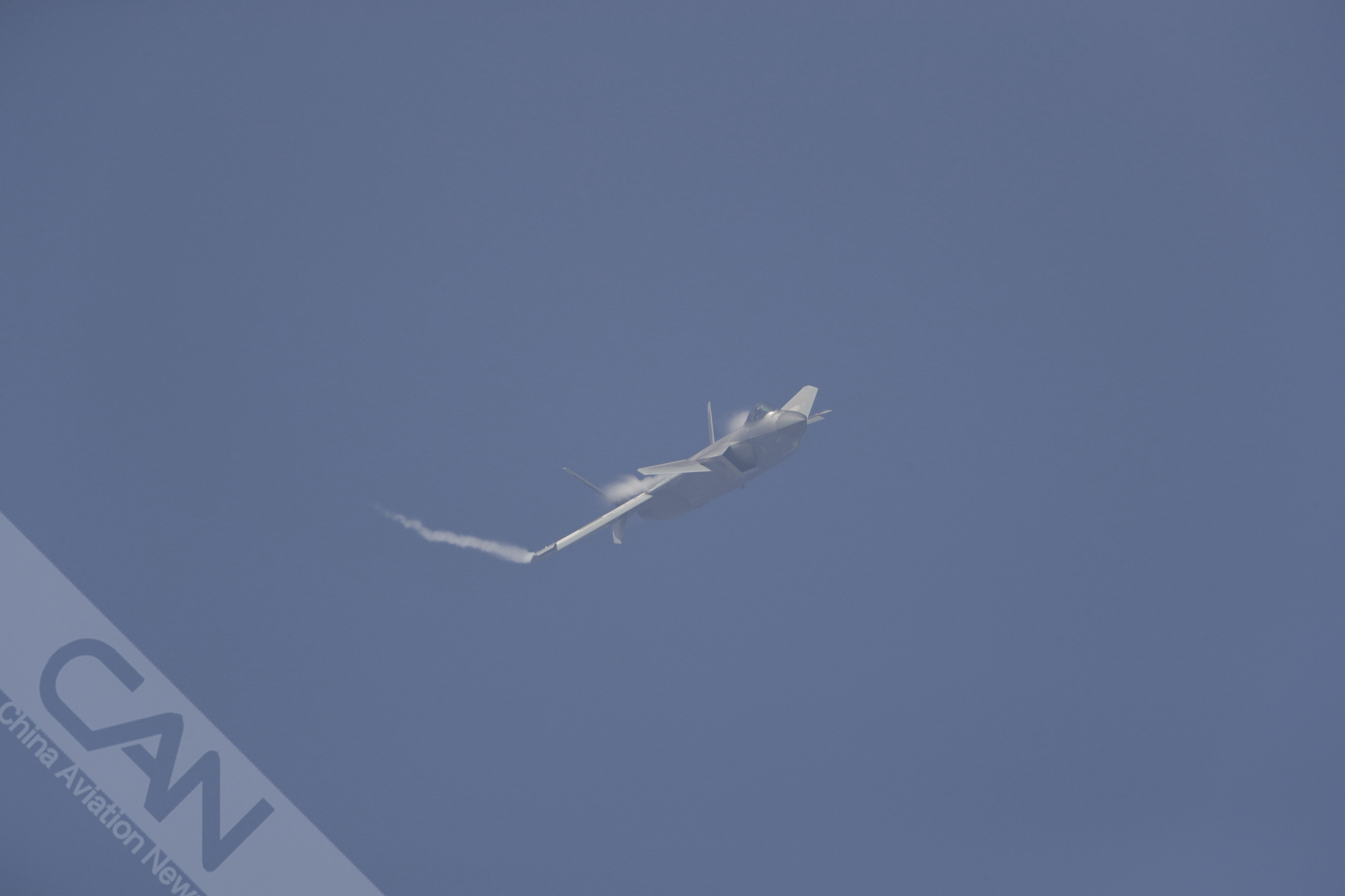 11月12日,第十五屆中國航展在廣東珠海正式開幕,中國空軍4架殲20戰機依次起飛,在空中進行了13分鐘的飛行表演。表演現場,殲20戰機快速機動,多次大角度拉升后翻轉而下。(攝影:門廣闊)