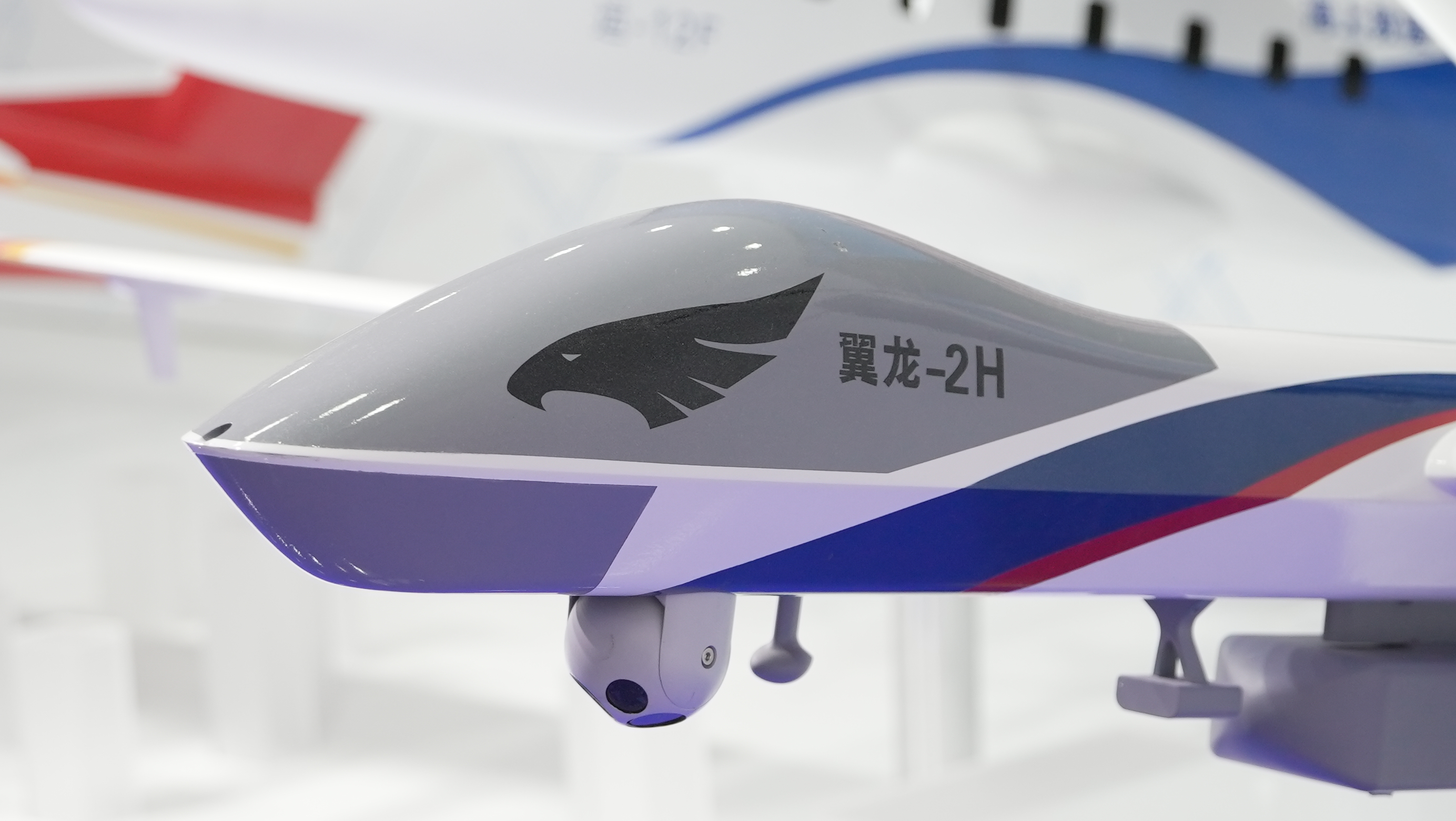 第55屆巴黎航展,“翼龍”2H應急救災型無人機亮相。據悉,“翼龍”2H應急救災型無人機,能在斷路斷電斷網的絕境中架起“生命天路”,執飛運輸通信使命。攝影:中國航空工業集團影像中心