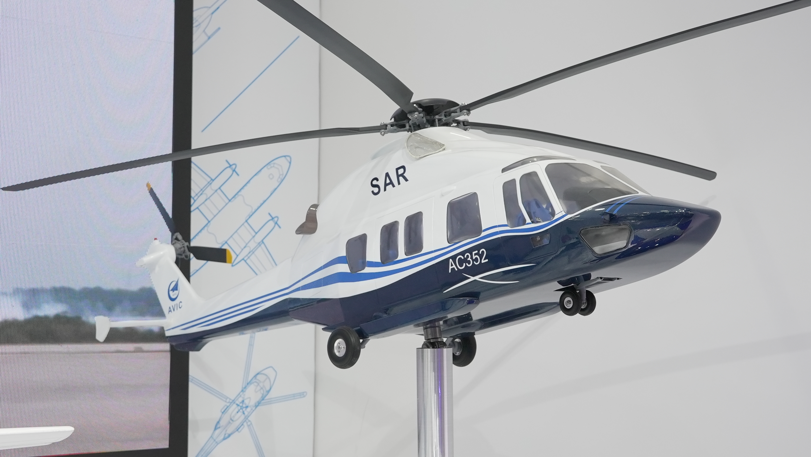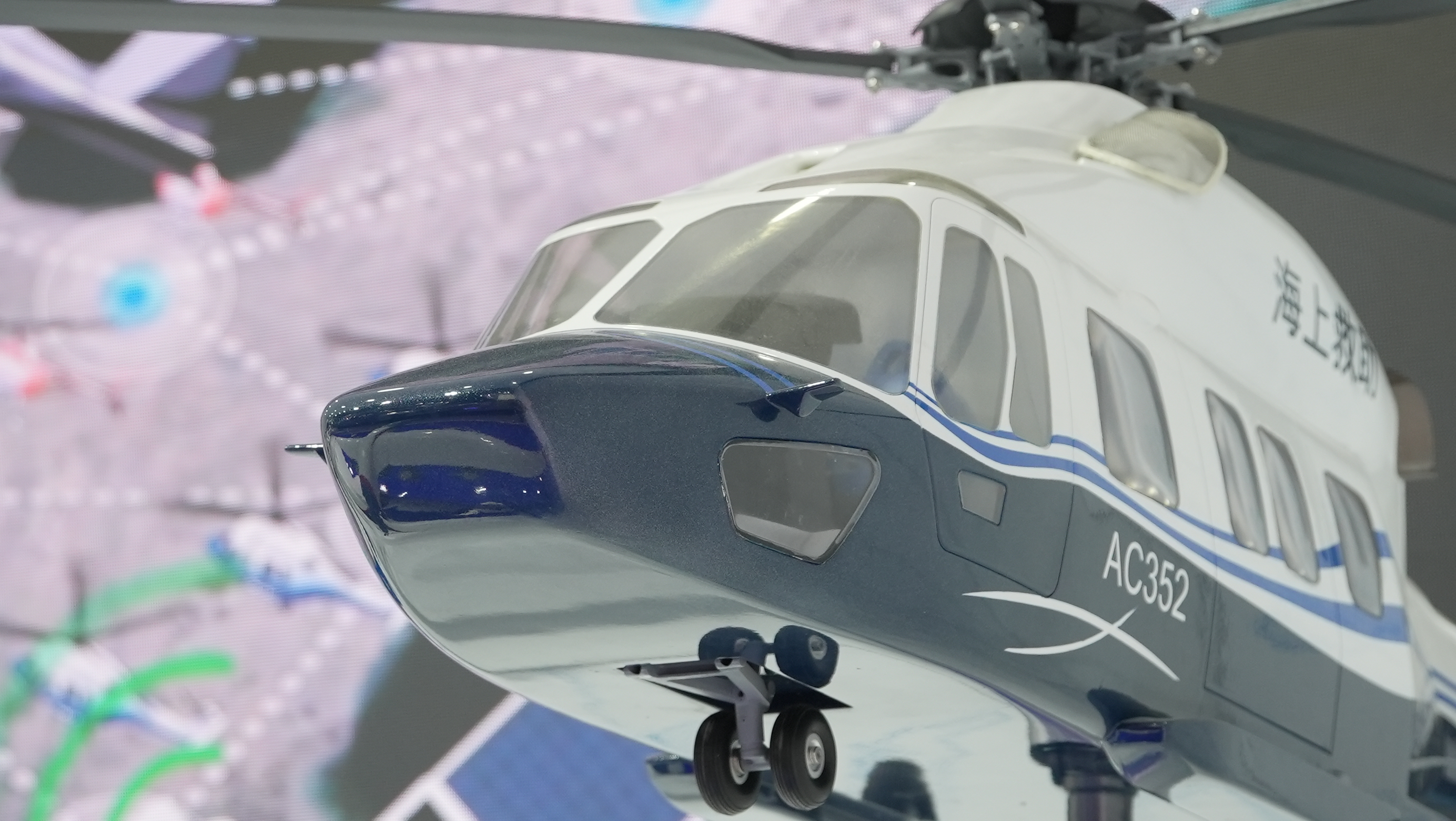 第55屆巴黎航展,AC352直升機(jī)亮相中國航空工業(yè)展臺民機(jī)板塊。據(jù)悉,AC352直升機(jī)填補(bǔ)了我國民用直升機(jī)譜系空白,在油氣平臺運(yùn)輸、搜索救援、近海運(yùn)輸?shù)阮I(lǐng)域應(yīng)用具備得天獨(dú)厚的優(yōu)勢。(中國航空工業(yè)集團(tuán)影像中心)