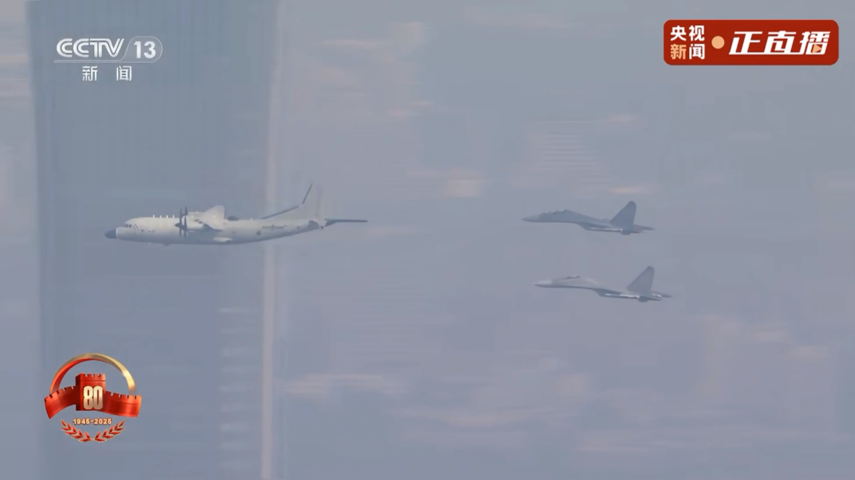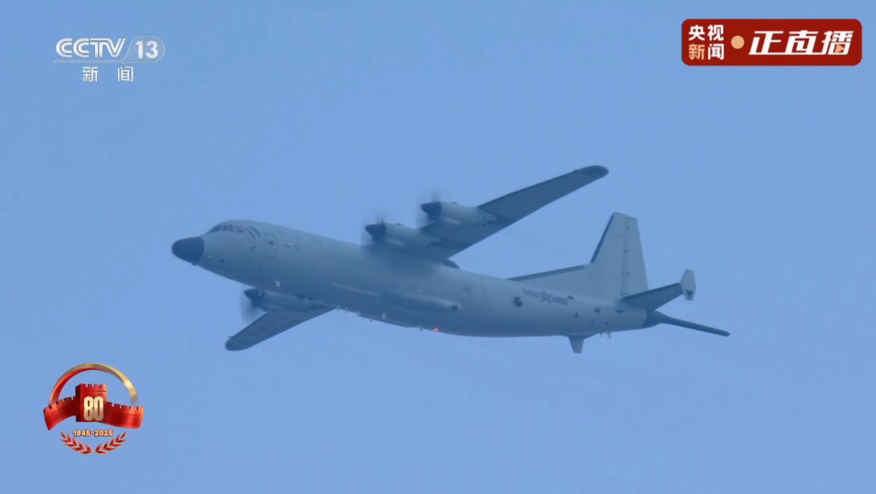運9反潛巡邏機、電子偵察機、雷達干擾機,在殲16戰機護衛下編成3個楔隊接受檢閱。多型特種飛機的列裝,大幅提升了我軍海空偵察、巡邏監視、電磁制壓能力。