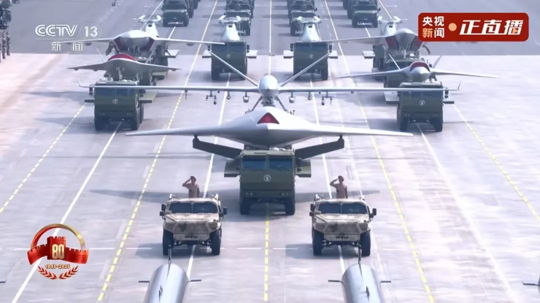 空中無人作戰方隊中,新型察打一體無人機、無人僚機、艦載無人直升機等多型裝備亮相。