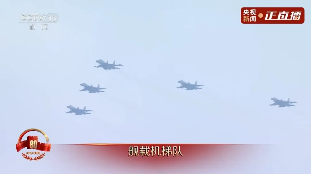 殲15DH、殲15DT、殲35、殲15T組成艦載機梯隊接受檢閱,從滑越起飛到彈射出擊,從單一機型到多機協同,中國艦載機實現了跨越式發展。