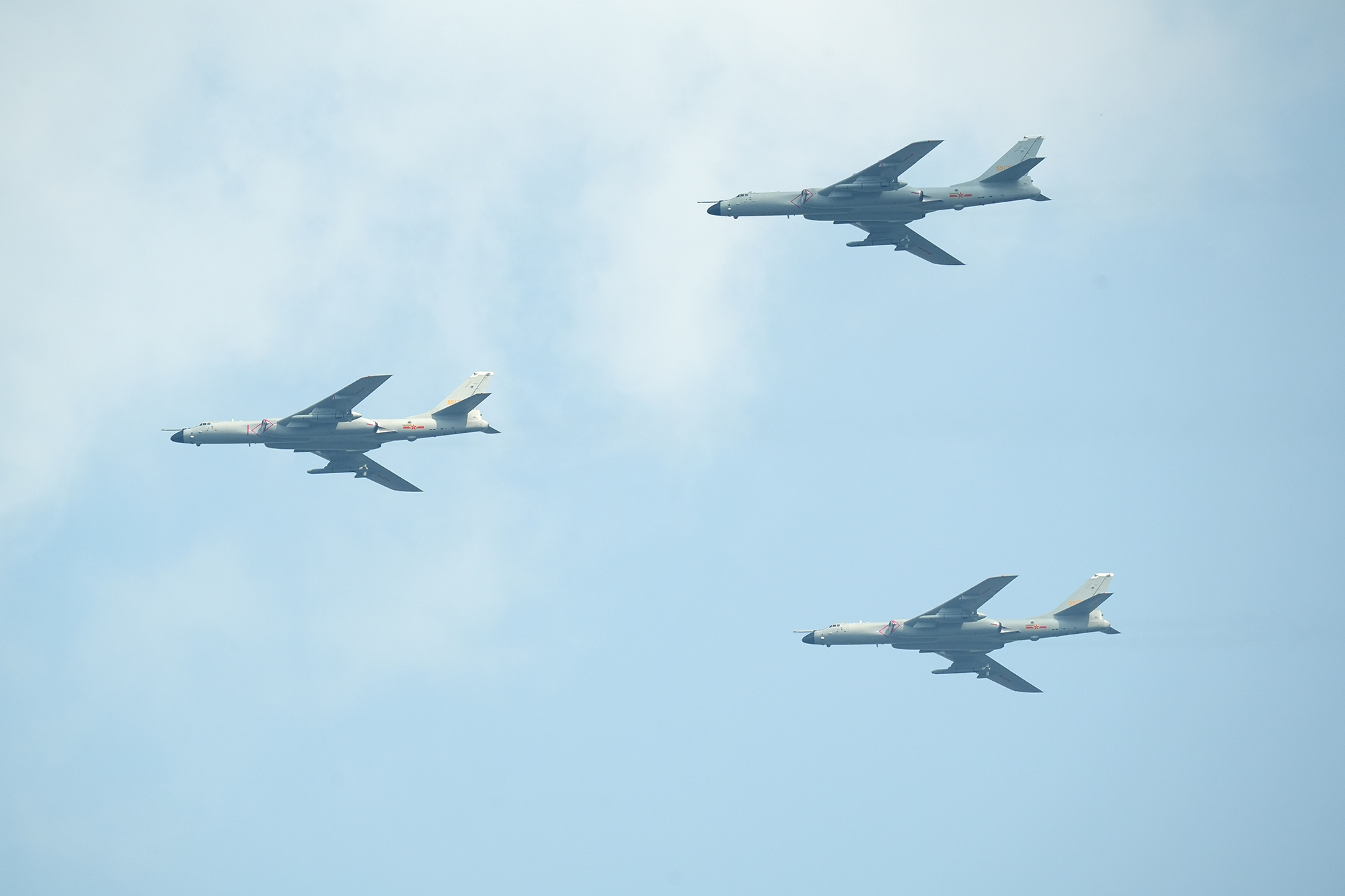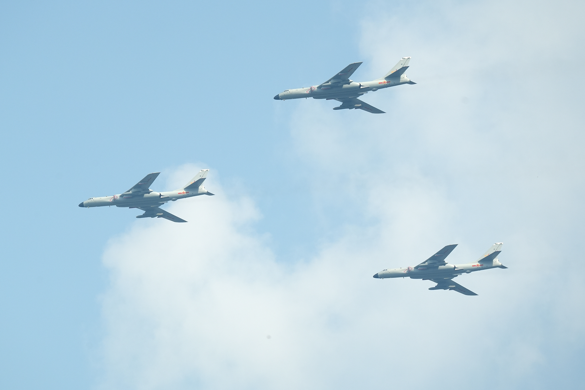 轟炸機梯隊接受檢閱。受閱的轟6N戰略轟炸機以及轟6K、轟6J,是我軍空基遠程打擊力量。攝影:鄭宇航