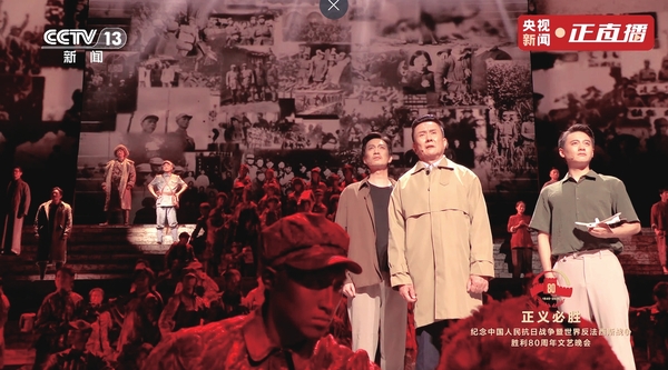 9月3日晚,紀(jì)念中國(guó)人民抗日戰(zhàn)爭(zhēng)暨世界反法西斯戰(zhàn)爭(zhēng)勝利80周年文藝晚會(huì)《正義必勝》在北京人民大會(huì)堂舉行。整場(chǎng)晚會(huì)將歷史時(shí)空、藝術(shù)時(shí)空、情感時(shí)空交織融合,深情回顧了中國(guó)人民抗日戰(zhàn)爭(zhēng)和世界反法西斯戰(zhàn)爭(zhēng)波瀾壯闊的歷史,突出表現(xiàn)了中國(guó)共產(chǎn)黨在抗戰(zhàn)中的中流砥柱作用,唱響了中國(guó)人民抗擊侵略的英雄凱歌,彰顯了中華民族自立于世界民族之林的精神氣概。