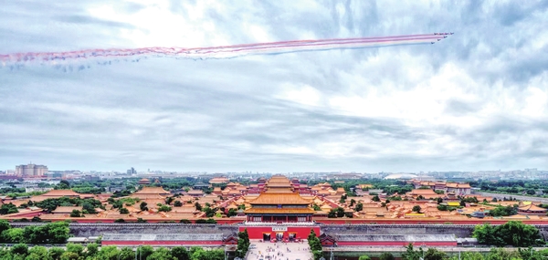 九三勝利日閱兵,受閱飛機(jī)飛過紫禁城。周正 攝