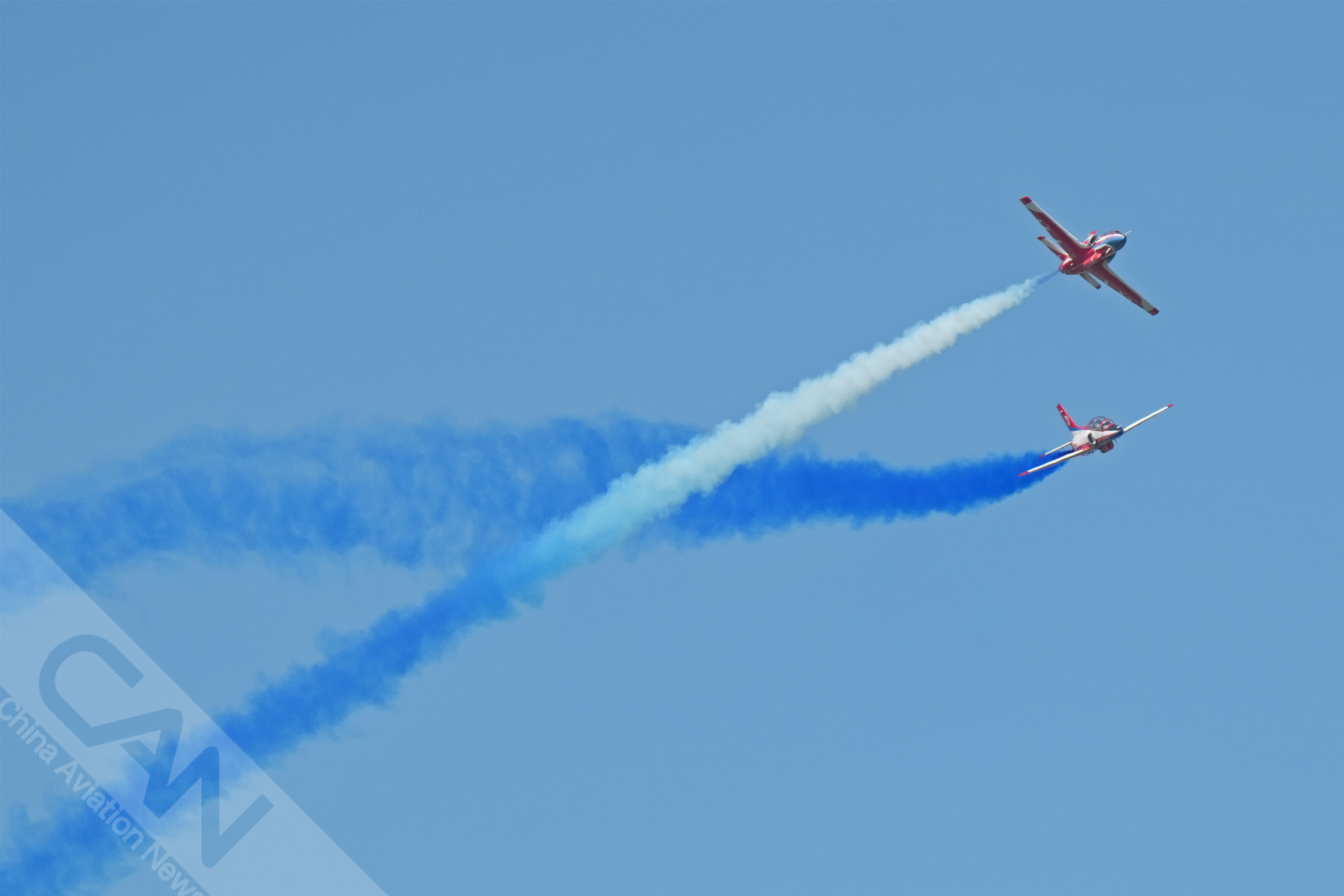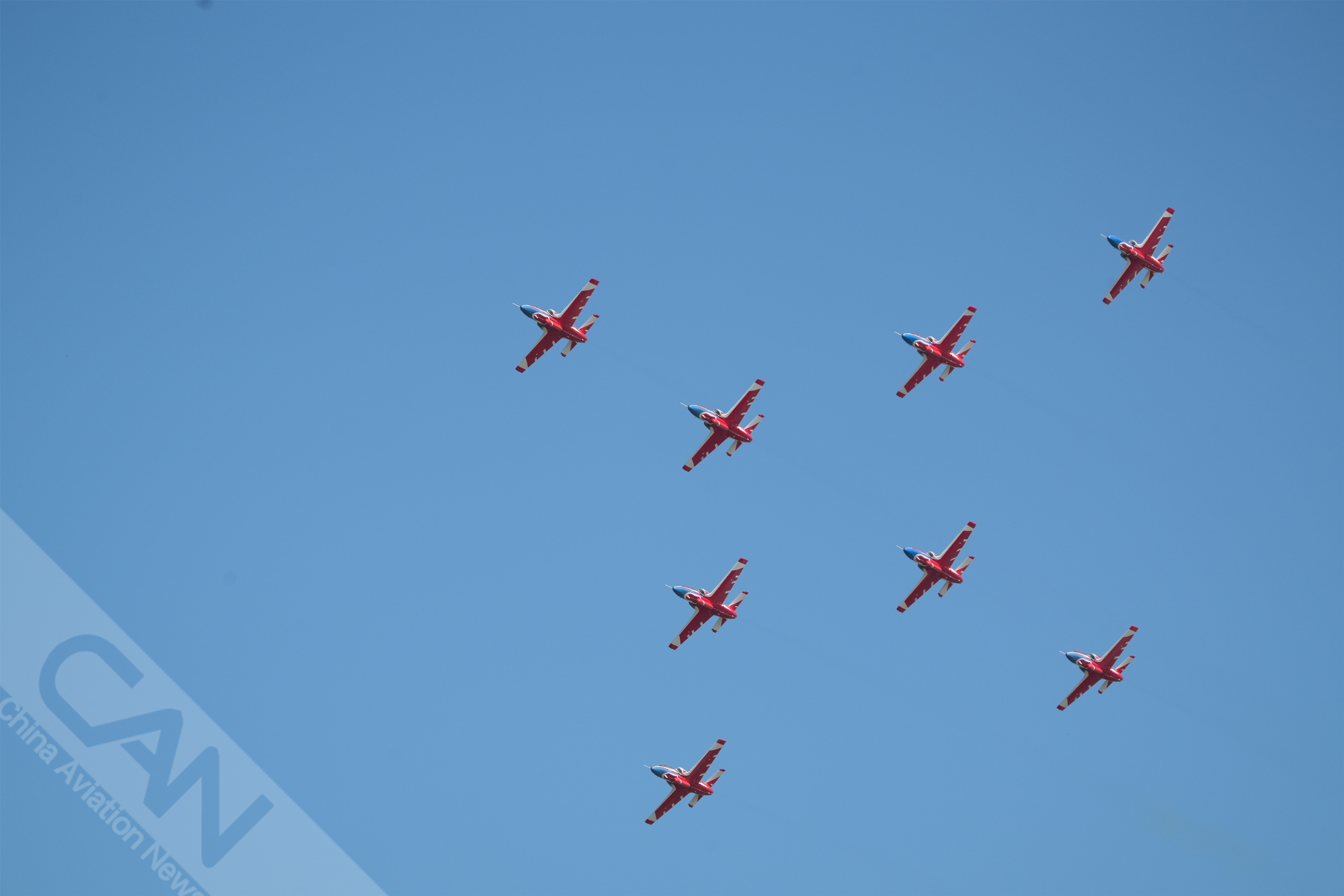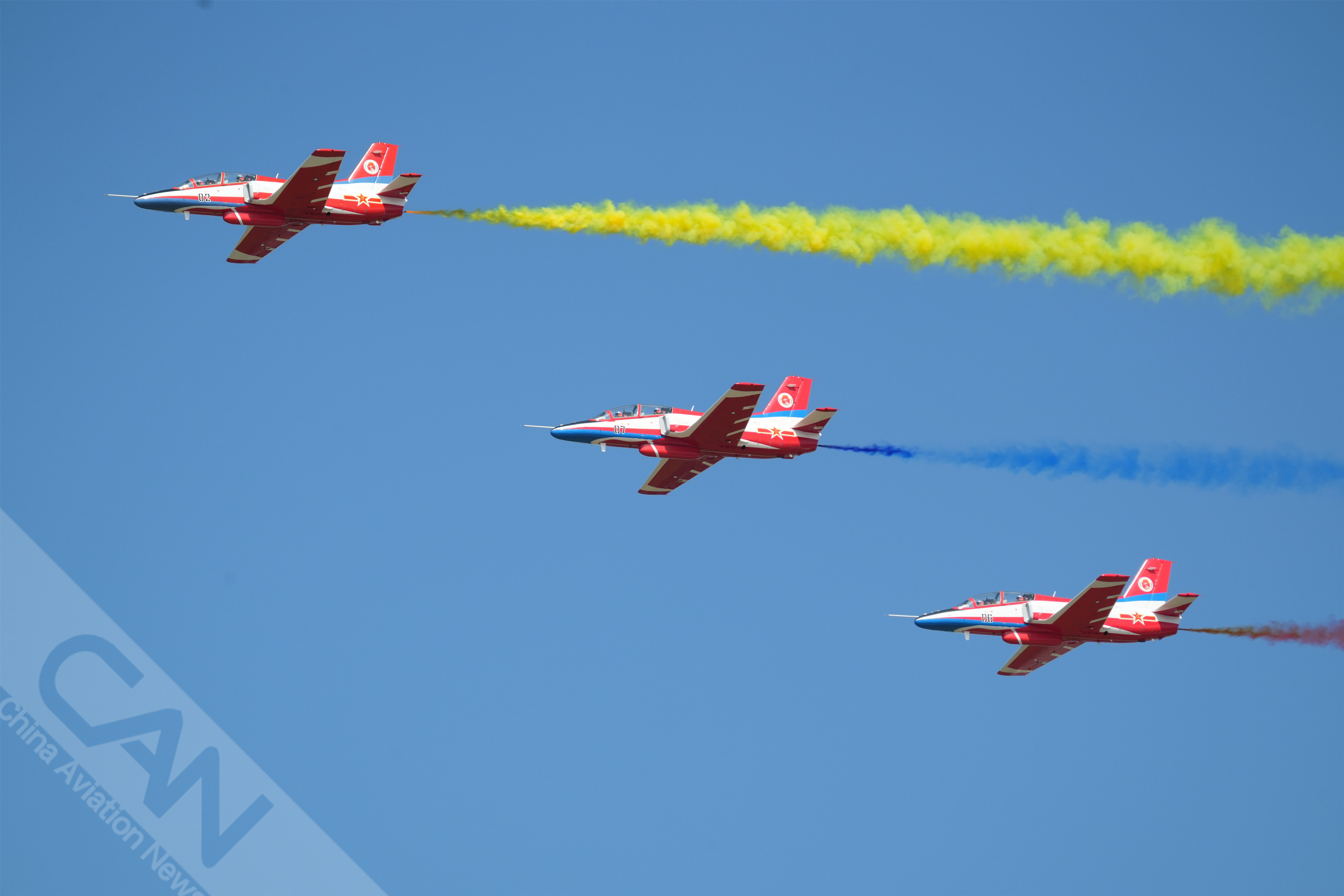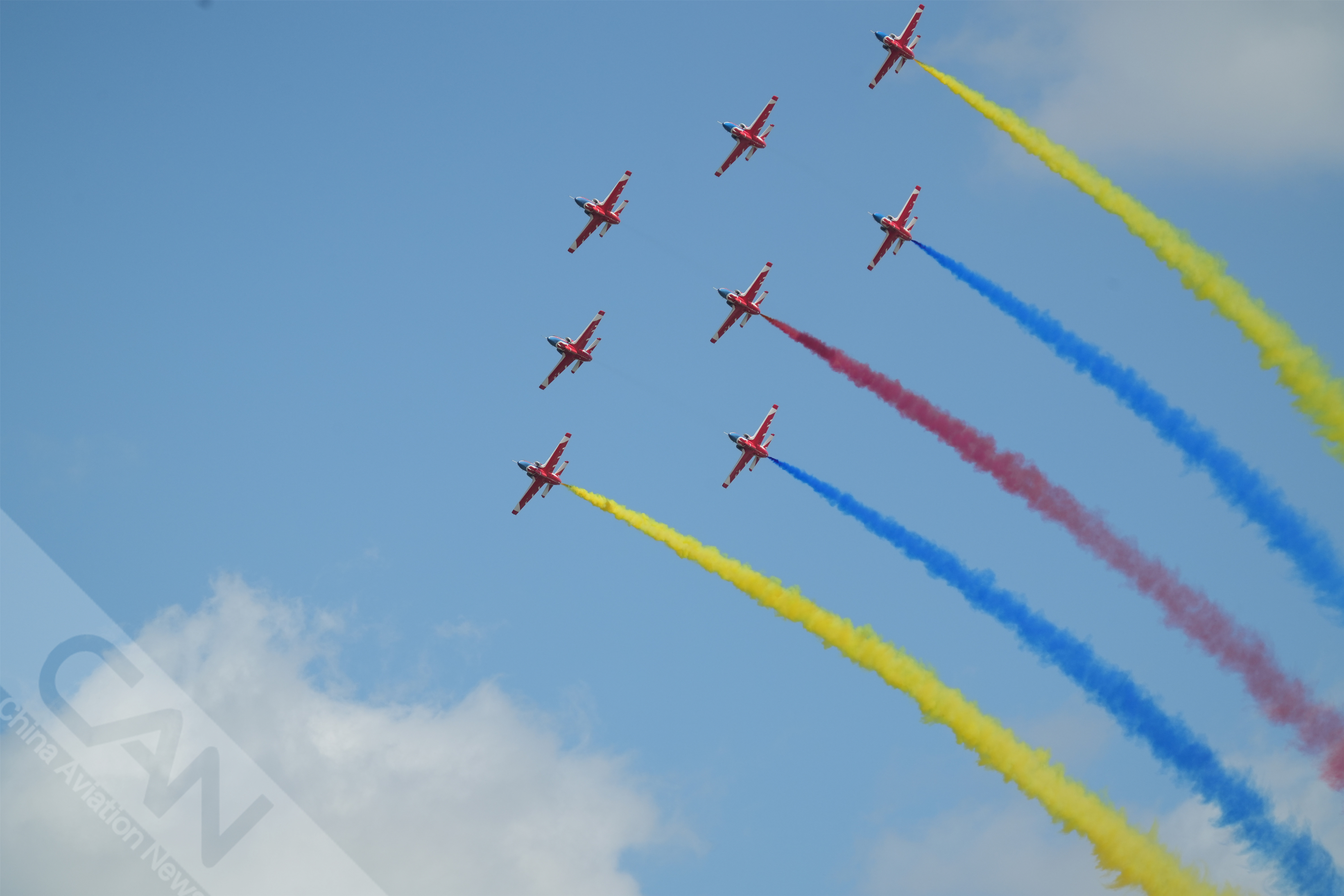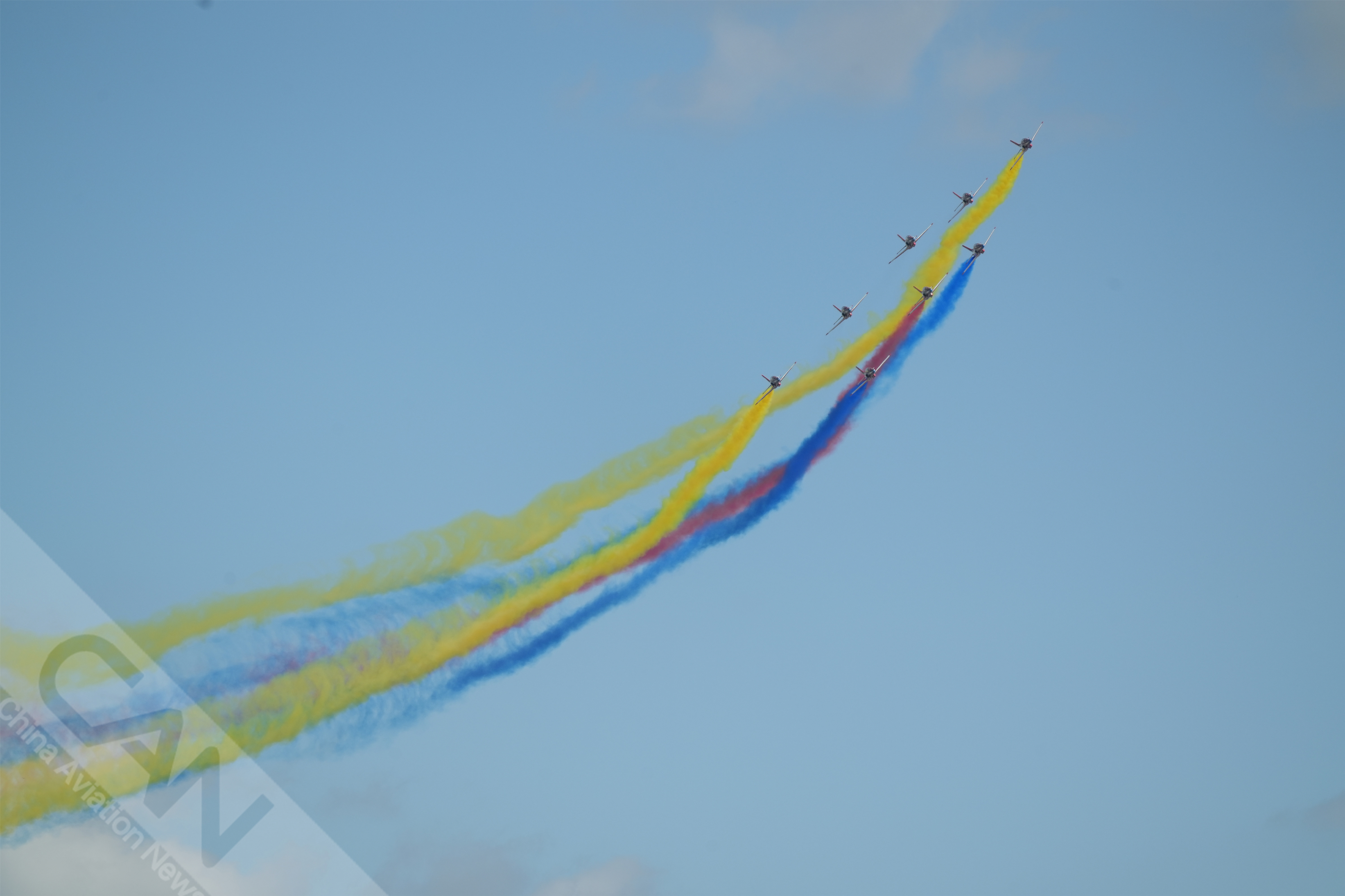 9月16日上午,多機型在長春進行適應性訓練,“紅鷹”飛行表演隊上演“空中作畫”,你最期待他們的哪個空中動作?攝影:鄭宇航