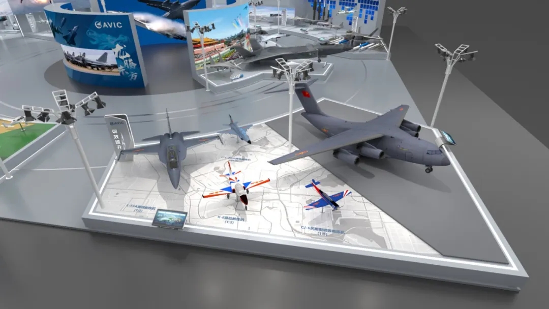 中國航空工業集團室內展區位于長春航空文化展示中心,整體設計采用同心圓布局。圓心部分為形象展區,集中展示集團“20家族”明星機型,展區中央設有360度沉浸式觀影空間,氣勢磅礴,讓人身臨其境。向外拓展的圓環依次分布著訓效提升、制空作戰、察打與協同、對面打擊與支援保障、應急救援與低空經濟、機載系統等內容。它們從閱兵場的莊嚴隊列,化作展臺上的璀璨明星,靜候觀眾的檢閱。