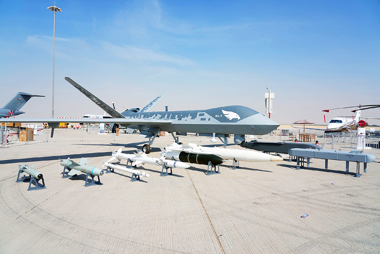 在室外靜展區,“翼龍”-X無人機以1:1全尺寸模型及配套武器進行靜態展示,這也是“翼龍”-X無人機首次在境外進行靜展,吸引眾多現場觀眾駐足。