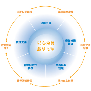 本模型寓意履行社會責任將為航空工業的可持續發展提供不竭的強勁動力,直觀的展現了公司履行社會責任的內容、特點及保障機制。