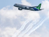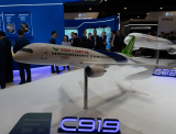 2月18日,中國國產大型客機C919在新加坡航展開幕前進行預演飛行。