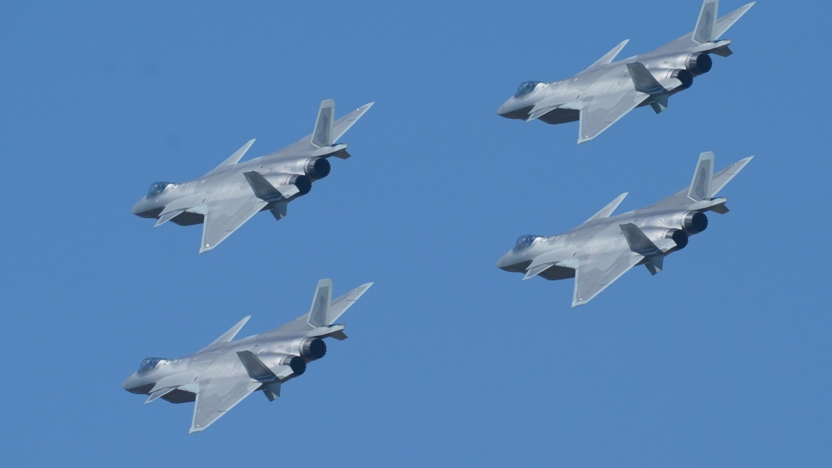 殲20四機編隊飛行